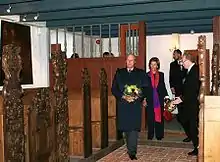 It is likely that parts of the manor, as it stands today, were built during Nils and Inger's lifetime,[11] when the main hall and the left wing of the main building were erected. Fru Inger lived quietly until her husband died in 1523, but as a widow she became politically active. Both historians and playwrights have examined the power struggle between the Protestant Fru Inger and Archbishop Olav Engelbrektsson, the last Catholic Archbishop of Nidaros. The Archbishop plundered Austrått three times, and contributed to the deaths of two of Inger's sons-in-law. On the other hand, Fru Inger was not above reproach; she harboured a pretender to the Swedish throne[10] and behaved aggressively in several dubious inheritance-related legal actions.[12]