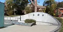Some panels are blank, symbolic of the inconclusive nature of any memorial to a service group. The interlocking walls are symbolic of nurturing hands. A contemplative space surrounded with rosemary (for remembrance) has a reflective pool fountain and the symbols of the armed forces. There are also places for additional plaques to name occasions when nurses have served.