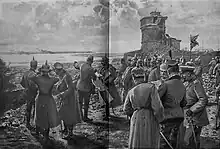 On 15 March, the Austro-Hungarians issued an order to secure the districts of Prijepolje, Novi Pazar, and Kosovska Mitrovica to their governorate, three districts acquired by Serbia during the First Balkan War.[82] Bulgarian actions on the ground persisted, leading to a second crisis, with Conrad demanding diplomatic assistance against Bulgarian violations.[77] The German chief of staff, General Erich von Falkenhayn, ordered Mackensen to mediate between the two parties, consequently Mackensen visited Sofia to meet Ferdinand and Prime Minister Vasil Radoslavov. The proposed German compromise was accepted and, on 1 April 1916, an agreement on a demarcation line was signed between the Austro-Hungarian and Bulgarian high commands.[82]