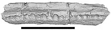 Austropelor was originally described from part of a right maxilla, yet the holotype, No. F2628, seems more likely to be a left amphibian mandible.[2] This genus was controversial at the time of the original description, as it was the only Jurassic labyrinthodont known until the description of Siderops. After the original paper, the Marburg Sandstone Formation was regarded as of Late Triassic age, with the overlying Walloon Coal Measures of possible lower Jurassic age.[3] Yet was later interpreted as Lower Jurassic in age, likely "Middle Liassic" (=Pliensbachian).[2]