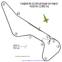 Autódromo Ciudad de Nueve de Julio - Guillermo Yoyo Maldonado is a 4.649 km (2.889 mi) circuit located in Nueve de Julio, Argentina.[1][2] It has hosted national events, such as TC2000 Championship, Top Race V6 and Turismo Nacional. On the 50th anniversary of circuit, the circuit was renamed as Autódromo Ciudad de Nueve de Julio - Guillermo Yoyo Maldonado as a tribute for native racing driver Guillermo Yoyo Maldonado.[3]