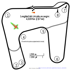 Autódromo Parque Provincia del Neuquén is a 4.319 km (2.684 mi) motorsports circuit located near Centenario, Neuquén, Argentina. The circuit was officially opened in 6 September 2009.[1] The circuit has hosted Argentine national championships, such as Turismo Carretera and TC2000 Championship.