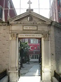 - Meryem Ana Church in Karaköy, is the headquarters of the Patriarchate. The church is located at Ali Paşa Değirmen St. 2, Karaköy. It was built in 1583 by Tryfon Karabeinikov, and was known as the Panaiya Church (in Greek Pan-Hagia Kaphatiani)[13] because it was founded by the Crimean Orthodox community of Kaffa. The church underwent a number of fires and several reconstructions with the major one in 1840, the date to which the present construction belongs. The church community left the Ecumenical Patriarchate of Constantinople on March 5, 1924, and adhered to newly found Turkish Orthodox Church.[20] The church's name was changed to Meryem Ana Church (Mother Mary Church) by the Autocephalous Turkish Orthodox Patriarchate in 2006 in honor of Virgin Mary.[13]