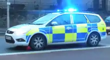 The Avon and Somerset Constabulary uses the modern blue and yellow retro-reflective square Battenburg markings on all of its operational vehicles. This style of livery was introduced in 2005, when the traditional 'jam sandwich' style police markings were removed in favour of the new livery, thought to aid officers responding to emergency calls by allowing the public to quickly and clearly identify the vehicle as belonging to the police.[35] The square livery also aids in the visibility of the force, which is perceived to enhance public confidence. Marked vehicles also show the force's Internet address on the rear and the word 'POLICE' across the bonnet. However, the force's crest is no longer used on most vehicles.