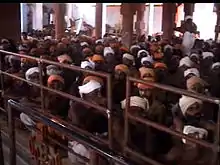 It became a ritual action to be performed before the people entered the Pathi to worship. The male devotees usually removed their upper garment and tied the headgear and entered the Pathi for worship. To this day this practice is followed.