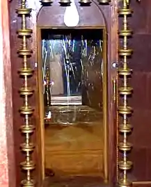 This is yet another unique practice that distinguishes Ayyavazhi from other Hindu religious traditions. The Nizhal Thangals and Pathis have, in their sanctuary, a mirror to reflect the images of those who come to worship. People pay obeisance to their God standing in front of this mirror, facing the Elunetru amidst two oil lamps. Even in the houses of the people of Ayyavazhi, the place earmarked for their daily worship has at least a mirror and a lamp. This is to show the worshippers who go in front of the mirror that, 'God is inside him or herself'.