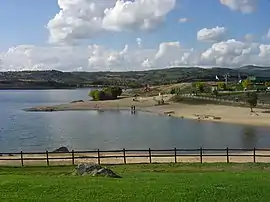 The beach by the shore of the Azibo Reservoir.