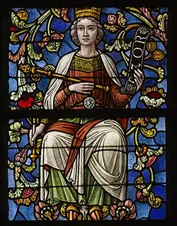 Azor in stained glass window: The Tree of Jesse, 1934 (detail), by Gustave Ladon. North transept, Church of Our Lady of Pamele, Oudenaarde, East Flanders, Belgium