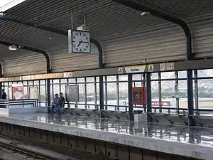 Aztlán Station (Spanish: Estación Aztlán) is a station on Line 1 of the Monterrey Metro. This station is located on Aztlán Avenue in Monterrey. This station is located in the Colon Avenue in the northeast side of the Monterrey Centre. It was opened on 25 April 1991 as part of the inaugural section of Line 1, between San Bernabé and Exposición.[1]