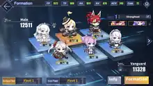 When battling an enemy, players can use a virtual joystick to control the front row, which can automatically fire shells at targets and manually launch torpedoes. While stationary, the back row can send shell barrages and the player can manually call in airstrikes. These will activate a bullet-clearing effect, removing all projectiles and torpedoes on screen. Players have an auto mode option to give up this control to the game's AI. Characters' health is fully replenished when completing or exiting a map. Morale points are deducted for each fleet character in a battle. Should a character fall in battle, they cannot join in further action on the map and a larger number of morale points are deducted for the fallen character at the end of the battle. Sustained low morale for a character decreases their stats and affection points. Low affection points lead the character to greet the player with vocals reflecting their disappointment.[7]