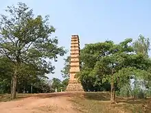Bình Sơn Pagoda (Vietnamese: Tháp Bình Sơn) is an 11-story terra cotta pagoda at the Vĩnh Khánh Temple in Vĩnh Phúc Province, Vietnam. It was built under the Trần dynasty and said to consist of 15 storeys in its original form. The pagoda is one of the ten outstanding old architectural works along with notable ones such as the One Pillar Pagoda. At 16.5 metres, it is the highest Trần dynasty terra cotta pagoda surviving until today.