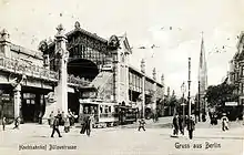 Heavily damaged by air raids and the Battle of Berlin on 22/23 November 1943 and 19 July 1944, the station was rebuilt after World War II, but went out of service in 1972 due to the interruption of the U2 line by the construction of the Berlin Wall. The building then hosted a bazaar in discarded U-Bahn cars, until in 1993 the eastern and western parts of the U2 were reconnected.[3]