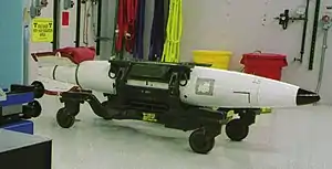 The B57 could be deployed by most U.S. fighter, bomber and Navy antisubmarine warfare and patrol aircraft (S-3 Viking and P-3 Orion), and by some U.S. Navy helicopters including the SH-3 Sea King.[1] The B57 was also deployed with Canada's CF-104s in Germany, and the Royal Air Force's Nimrod from RAF St Mawgan and RAF Kinloss in the United Kingdom and Malta in the Mediterranean.