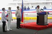 ![]() BRP Melchora Aquino docked in Port Area, Manila, Philippines during commissioning. | |