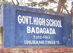Badagada High School is a Government of Odisha owned high school in the capital city of Bhubaneswar.[1] It is led by a headmaster, but effective administration and the budget are the responsibility of the Department of School & Mass Education, Government of Odisha.[2]