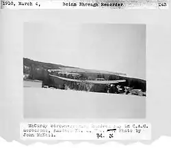 On 23 February 1910, with Baddeck No. 1 repaired, McCurdy made its first post-repair flight of 90 meters off the ice on Baddeck Bay.[6]
