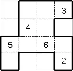 Bag is played on a rectangular grid, usually of dashed lines, in which numbers appear in some of the cells.