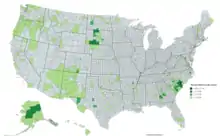 In December 1999, the National Spiritual Assembly of the United States stated that out of approximately 140,000 adult (15 and over) members on the rolls, only 70,000 had known addresses,[148] and another estimate was of 137,000 plus Iranian refugees.[49] Nearly 17 percent of US Baháʼís reported being international pioneers, while some 35 percent indicated homefront pioneering experience inside the United States to places the religion had not previously had a presence.[75] The American Religious Identity Survey (ARIS) conducted in 2001, with a sample size of 50,000, estimated that there were 84,000 self-identifying adult (21 and over) Baháʼís in the United States.[149] The Association of Religion Data Archives (relying on World Christian Encyclopedia) estimated there were some 525,000 Baháʼís in the United States in 2005[150] however internal counts in Feb 2011 show 175,000[151] excluding Alaska and Hawaiʻi. Danish researcher, Margit Warburg, stated that the Baháʼí figure reported in World Christian Encyclopedia for the United States is highly exaggerated.[152] Nevertheless as of 2020 the Association of Statisticians of American Religious Bodies noted it as the largest non-Christian religion in the country measured by county.[4]