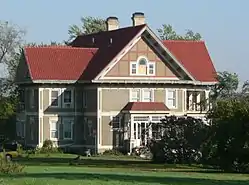 The Baker House, located at 48113 SD Highway 48[2] near Alcester, South Dakota, was built in 1914. It was listed on the National Register of Historic Places in 1979.[1] It is located on the South Dakota side of the Big Sioux River.