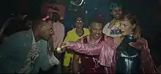 An accompanying music video for "Balans" was directed by Anton San and released onto Stan's YouTube channel on 2 March 2016; by May 2016, the clip amassed over one million views.[9][10] The clip was filmed in an abandoned warehouse or a polygon where the inside temperature was of 6 °C.[4][11] About the video, Stan particularly confessed that "[it] is very dinamic and colored, the way that the life of a pop artist looks like."[5] The clip commences with Stan standing on a pickup, with fellow background dancers being present inside the car. Following their leaving, she looks from above at a partying crowd in a hall, which appears to be halfway filled with water, while sporting pink and red clothing. Subsequently, Stan is displayed dressing a pink fur coat and pants,[4] while walking in the surroundings and finally discovering Mohombi. Following this, he provides his singing part when flirting with Stan, with her dancing around him. Following this, the crowd is once again shown dancing together to the song, and the clip closes with Stan being left alone in the room. Scenes interspersed through the main video show her posing in front of a blue wall or her lying atop the pickup car, with her head being placed on a golden purse.[9] Italian publication RnB Junk writer, Umberto Olivio, criticized the clip for not having a plot and for being "unrealistic".[2]