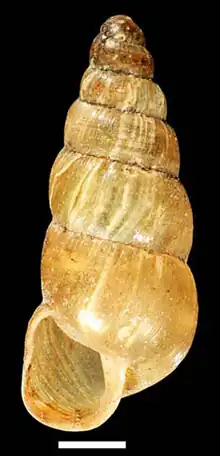 Balea sarsii reaches a maximal height of 7 mm; Balea perversa might be higher (up to 10 mm).[3] The sculpture in Balea sarsii is also more wrinkled, coarser and less regular, compared to the fine, regular riblets typical for Balea perversa.[3] The shell colour is also yellowish – light brown, compared to the usually somewhat darker brown in Balea perversa.[3] A weak, parietal denticle may be present in Balea perversa, but not in Balea sarsii.[3] All these characters are, however, variable; especially the shell dimensions.[3] The most reliable character to use in separating the two species is the form of the apical whorls: in Balea perversa this part of the shell is almost cylindrical, but in Balea sarsii it is conical.[3]