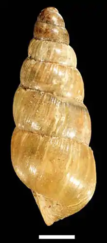 The shell of this species is sinistral (left-handed) in its coiling. Differs from Balea perversa in its more slender and yellowish rather than brownish shell. The first whorl increases in diameter more rapidly and the sculpture is more weakly striated (with coarse growth lines rather than distinct riblets).