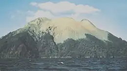 At the summit is a 300-meter-wide and 180-meter deep crater. The volcanic island and its island group forms part of the Bismarck Archipelago of young volcanoes.[5] The first record of an eruption on the island dated back to 1872,[3] which forced its inhabitants to temporarily abandon the island.[6] Eruptions on the island are typically small in explosiveness, which is confined to within the crater. The last recorded eruption of Bam was in 1960.[3] From 2004 to 2005, fumarole activity was observed on the island. Surveys have also revealed two landslide scars along its flanks.[4]