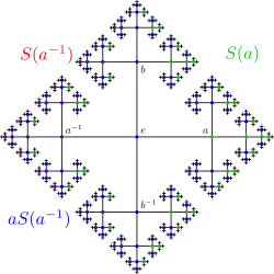 The group can be "paradoxically decomposed" as follows: Let S(a) be the subset of consisting of all strings that start with a, and define S(a−1), S(b) and S(b−1) similarly. Clearly,