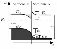 Prediction of the band alignment is at face value dependent on the heterojunction type, as well as whether or not the heterojunction in question is heterovalent or isovalent. However, quantifying this alignment proved a difficult task for a long time. Anderson's rule is used to construct energy band diagrams at heterojunctions between two semiconductors. It states that during the construction of an energy band diagram, the vacuum levels of the semiconductors on either side of the heterojunction should be equal.[1]
