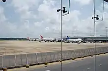 • Apron Charlie: It has 8 parking bays, all of them are currently remote bays. It can handle any 8 wide-body such as an Airbus A330, Airbus A340, Boeing 777 or Boeing 747 at once. The remote bays will be converted into 8 Airbus A380 capable boarding bridges under the Stage II development project. It is the only apron that is currently capable of handling the Airbus A380-800. It has been used by Emirates Airbus A380s thrice.