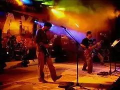 In parallel with Bangladeshi pop rock, some musicians introduced blues as it was not well-known in the country. Souls guitarist Ayub Bachchu released two blues-inspired albums as a solo artist, but some people did not consider them blues rock. Inspired by American and British blues rock, Feelings (now Nagar Baul) from Chittagong also released two successful blues rock albums, Station Road (1987) and Jail Theke Bolchi (1993). They were trying to distinguish their music from Adhunik and to imitate the sound of 1970s roots rock bands like the Eagles and Dire Straits. A number of bands and artists followed the blues rock music of Feelings, such as Love Runs Blind.[20] This music led to more subgenres emerging, such as psychedelic rock and hard rock. One of the most significant psychedelic rock bands of the era was Nova.[21] The impact of blues rock has declined since then. There was renewed interest in the genre when Bachchu released the instrumental blues album Sounds of Silence in 2007, which influenced several young guitarists but was not very popular.[22][13] In 2017, Bachchu started the Dhaka Jazz and Blues Festival, where blues and jazz musicians from many countries performed.[23]
