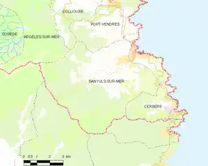 Map of Banyuls-sur-Mer and its surrounding communes