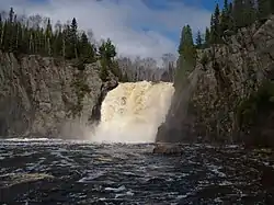 The High Falls of the Baptism River, in Tettegouche State Park, is the highest waterfall entirely within the state of Minnesota at 60 feet (18 m). The High Falls on the Pigeon River is higher, but is on the border with Ontario.