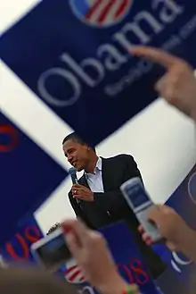 - ↑ "Obama raises $55 million in February, sets new record segment". CNN. March 6, 2008. Archived from the original on March 9, 2008. Retrieved March 6, 2008.
