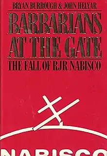 Barbarians at the Gate: The Fall of RJR Nabisco is a 1989 book about the leveraged buyout (LBO) of RJR Nabisco, written by investigative journalists Bryan Burrough and John Helyar. The book is based upon a series of articles written by the authors for The Wall Street Journal.[1] The book was made into a 1993 made-for-TV movie by HBO, also called Barbarians at the Gate. The book centers on F. Ross Johnson, the CEO of RJR Nabisco, who planned to buy out the rest of the Nabisco shareholders.