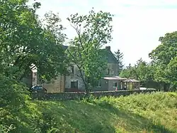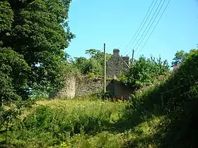 The ancient mansion or castle[3] of Kersland stood on Easter (now 'East') Kersland Farm. The remains of the 'L-Plan' tower has been built into the farmhouse. The barmkin wall survives and has a surviving strong defensive corner tower.[4] Paterson records that the house was almost entirely pulled down by the feuar, Robert Ker.[5] The remaining two barrel vaulted chambers, later used as a dairy and stable, with walls 8 ft thick, until recently formed part of the offices attached to East Kersland.