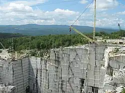 The granite is mined at the E. L. Smith Quarry, the world's largest "deep hole" granite quarry, owned by the Rock of Ages Corporation. All of the stones in the Hope Cemetery in neighboring city of Barre are made with Barre granite.[3] "Barre Gray" granite is sought after worldwide for its fine grain, even texture, and superior weather resistance.