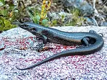 The Barrier skink (Oligosoma judgei) is a species of medium-sized skink, a lizard in the family Scincidae. The species is endemic to New Zealand, where it lives in the alpine habitat of the Darran and Takitimu Mountains of Fiordland. It is one of only two species of New Zealand skinks that live exclusively in the alpine zone, the other being the "Sinbad skink", Oligosoma pikitanga, a closely related species of similar appearance which is found in the same part of the South Island. The Barrier skink was first collected in the 1960s[2] but was overlooked until rediscovery by a pair of mountain climbers in 2005; the species was scientifically described in 2009.