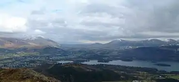![]() Barrow seen from the Newlands Valley; note the light-coloured fans of mining spoil | |