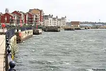 After 1898, the Barry Docks consisted of a 7-acre (2.8 ha) basin and two docks of 73 and 31 acres (30 and 13 ha) respectively. In 1901 the Company stated that there were 21 high-level and 9 low-level coal hoists with a further 8 movable (using traversers) two of which were placed on No. 1 dock. Nos. 1 to 11 on No. 1 dock and 22 to 31 on No. 2 dock, were served by high-level rail tiers and short viaducts and with generally two lines for the laden wagons to a single line weighbridge and two lines from the single line empties weighbridge returns. Low-level hoists on No. 1 dock were numbered 12, then 13 to 18 on the Mole and thence 19 on the Barry Island side of No. 1 dock. Following 1915, the Barry Railway Company established low-level fixed hoists Nos. 32, 33, 34 and Nos. 4 and 5 movable, on the Barry Island side of No. 1 dock. Two earlier low-level hoists, Nos. 20 and 21 were fed from Graving Dock Junction and Caisson sidings area. In 1893 these were numbered 2 and 3 but were removed prior to 1927 and one early map shows No. 18 on the Mole, renumbered 20, 18 being substituted for one on the Barry Island side of No. 1 dock quay where three low-level hoists, Nos. 1, 2 and 3 movable (with traversers) existed either side of No. 19. Most of the 1st-generation high-level coal hoists on both docks were replaced by Armstrong–Whitworth structures capable of more rapid discharge of coal wagons. There had been three high-level movable hoists at the north end of No. 2 dock and close to Nos. 30 and 31 hoists and on one docks plan, these too were referenced "No. 3 Movable" and "No. 4 Movable." Besides other dedicated plots, that area had been used by the US Army towards the end of World War II. Not one of the hoists has been left for heredity and only pictorial records of their format survive.