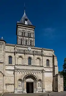 In the late 1820s, the western façade was restored by order of the Saint Severinus Building Council. To accomplish this the council hired architect Pierre-Alexandre Poitevin to create a neo-Romanesque façade. The construction of the porch gate hides the Romanesque porch.