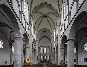 The Basilica of St. Cunibert[1][2] also St. Kunibert (German pronunciation: [ˌzaŋt ˈkuːniˌbɛʁt], Colognian pronunciation: [ˌtsɪnt ˈkʊnɪˌbɛːt]) is the last of Cologne's twelve Romanesque churches to be built. It was consecrated in 1247, one year before work on the Gothic Cologne Cathedral began. It was declared a minor basilica in 1998 by the then Pope John Paul II.[1]