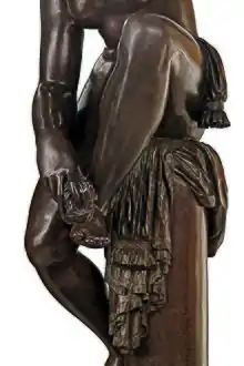 The subject of a nude, bathing female figure has been a topos of ancient art. One of the most famous examples is the Crouching Venus, a Hellenistic model of Venus surprised at her bath. The goddess Venus in Roman times embodies beauty, desire, sexuality, fertility, femininity, love and victory ("Venus Victrix"). As Venus Genetrix, the mythological ancestor to Julius Caesar, she played a central role in the political representation of the Julio-Claudian dynasty. The rebirth of the gods of antiquity in the monumental sculpture of the Renaissance took place relatively late, significantly later than in painting. In monumental sculpture, Jacopo Sansovino (1486-1570) seems to have been the first modern sculptor to bring them back to life and to make two figures of Venus, now lost. Towards the middle of the 16th century the imitation of ancient sculptures of Venus became diffused in contemporary creations. The ancient image of the goddess found its true rebirth with Giambologna, who tackled all the types of ancient representation known at the time and who made it a fundamental subject in his art. His figures of the goddess are possibly the only ones to have achieved the status of the great models from antiquity.[7]