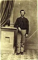 The battery's initial enlistments expired December 19, 1864, but these veterans were not mustered out of service until December 24, 1864, at Louisville, Kentucky.[120] New recruits were brought into replace those who had been discharged; these continued to serve until July 15, 1865, when they were discharged near Chattanooga, Tennessee.[121][122]