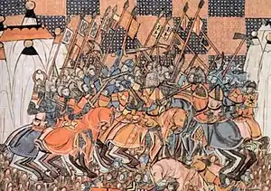 The Battle of Dorylaeum took place during the First Crusade on 1 July 1097 between the crusader forces and the Seljuk Turks, near the city of Dorylaeum in Anatolia. Though the Turkish forces of Kilij Arslan nearly destroyed the Crusader contingent of Bohemond, other Crusaders arrived just in time to reverse the course of the battle.[4]