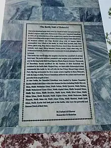 Between the Karakar Pass and the Malandari Pass, the Yusufzai Afghans under the command of Kalu Khan routed the combined forces of Zain Khan and Raja Birbal. Birbal lost his life in this battle.[12][13][14] According to Mughal historian Khafi Khan, 40,000–50,000 Mughal men perished in this battle.[15] However, Badoani claims that around 8000 Mughal men perished as a result of the entire episode.[16][17]
