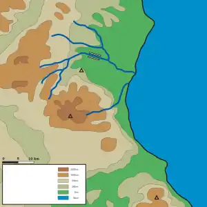 The details of the Macedonian army at the second encounter at Pydna are more scarce. It is known that Andriscus started his campaign with Thracian troops.[7] These were usually light troops; the troops that composed the main body of his army are unknown; it is not known if they even fought in the traditional Macedonian phalanx or a looser formation. He also had a sizeable number of cavalry. The total strength of Andriscus' army is unknown, but it was significant enough for him to be confident about detaching a portion of it just before the battle.[8][9]