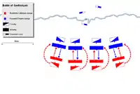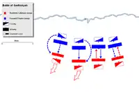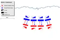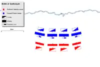 The site of the Battle of Qadisiyyah, showing Muslim army (in red) and Sassanid army (in blue)