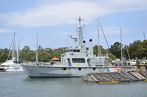 ![]() The former HMAS Rushcutter, berthed in Rozelle Bay, New South Wales | |
