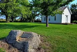Bay Settlement Church and Monument is a historic church building and structure located in rural Delaware County, Iowa, southwest of Delhi. Organized in 1846 as the Upper Bay Church, it was the first Free Baptist Church congregation in Iowa.[2] They built a log structure for their church the same year, and it served the congregation until this frame, front gable structure was completed in 1873. A monument to honor their 14 Civil War dead was erected in the cemetery in 1865. Its dedication in August that year is believed to be the first Memorial Day service in Iowa.[2] Services were held on May 30 in succeeding years. The church and monument were listed on the National Register of Historic Places in 1977.